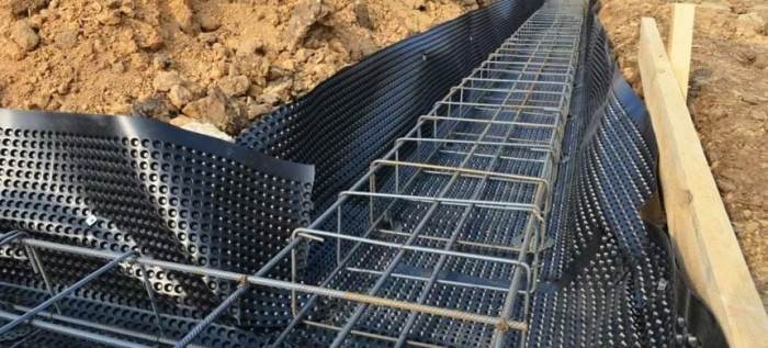 - оклеечна гідроізоляція: наклеювання на поверхню фундаменту рулонних матеріалів, таких як руберойд, полімерні мембрани;