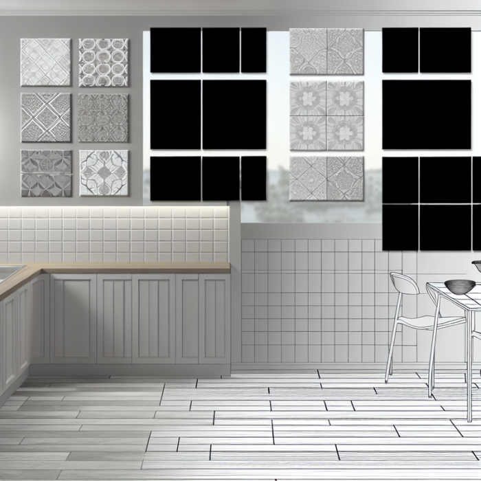 Не забывайте о естественном и искусственном освещении: в светлых кухнях можно позволить себе больше тёмных и насыщенных оттенков, а в помещениях с окнами на север – стоит выбирать плитку светлых тонов. Размер и форма мебели также влияют на восприятие плиточного покрытия: если гарнитур крупный и массивный, небольшая плитка может потеряться, а крупноразмерная – нарушить баланс.